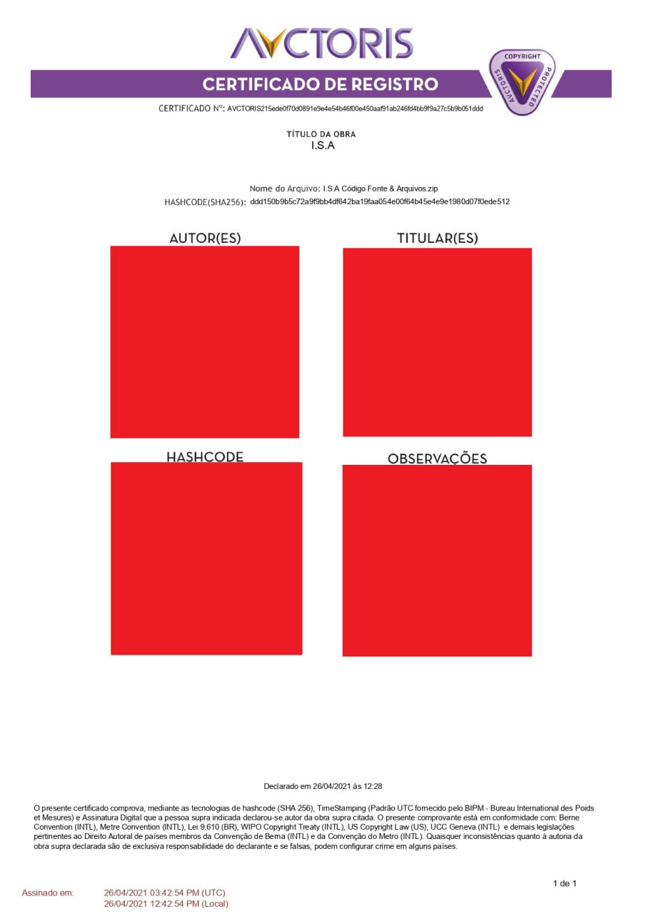 Protege juridicamente o programa JARVIS como software no Brasil.