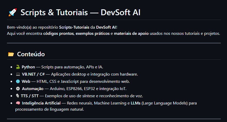 💡 Acesse exemplos, scripts e tutoriais prontos para uso.